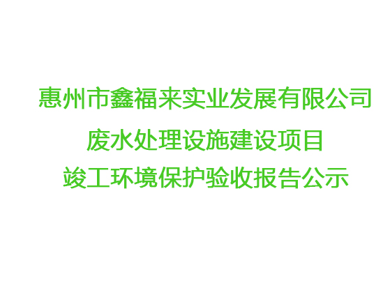 惠州市鑫福來實業(yè)發(fā)展有限公司廢水處理設(shè)施竣工環(huán)境保護驗收報告公示